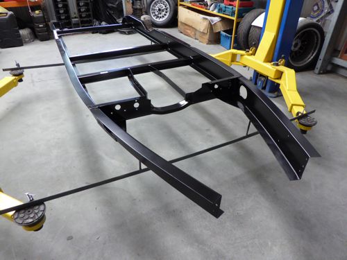 How did this happen? A simple slip up at the Morgan factory when someone in despatch accidently placed the wrong chassis in the export crate and sent it by air. Not a problem if just down the road from Malvern Link but we are on the other side of the world and just shipping a chassis here is very expensive. To repatriate the incorrect chassis and ship the correct 4/4 chassis would cost several thousand dollars. How was this resolved? Fortunately I don't yet have a body for the project (the original melted in the fire) so a wider chassis in itself was not a problem and I don't mind the extra footwell space. Discussions with the factory and the ever helpful Marlene and Chris at Morgan Cars Australia resulted in an agreement that I would keep this chassis and the factory will ship some parts to enable me to utilise it for the project. A win-  |
